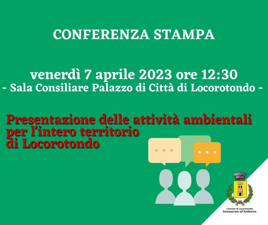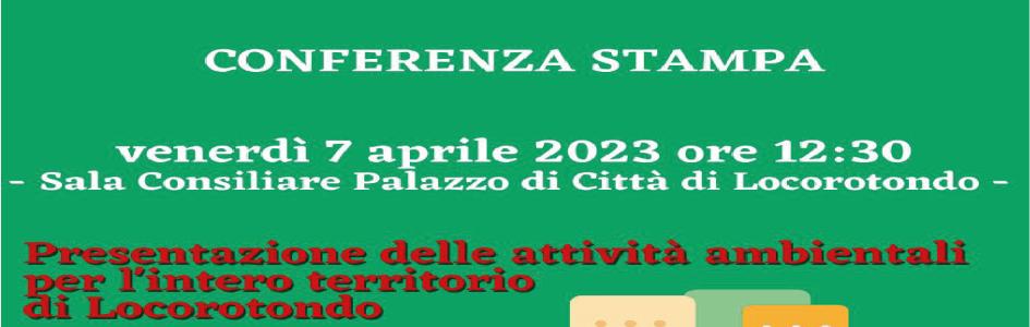 Nella giornata di venerdì 7 aprile 2023 ore 12:30 presso la Sala Consiliare del Palazzo di Città di Comune di Locorotondo, avrà luogo la conferenza stampa per la 𝒑𝒓𝒆𝒔𝒆𝒏𝒕𝒂𝒛𝒊𝒐𝒏𝒆 𝒅𝒆𝒍𝒍𝒆 𝒂𝒕𝒕𝒊𝒗𝒊𝒕𝒂̀ 𝒂𝒎𝒃𝒊𝒆𝒏𝒕𝒂𝒍𝒊 𝒑𝒓𝒆𝒗𝒊𝒔𝒕𝒆 𝒑𝒆𝒓 𝒍'𝒊𝒏𝒕𝒆𝒓𝒐 𝒕𝒆𝒓𝒓𝒊𝒕𝒐𝒓𝒊𝒐 𝒄𝒐𝒎𝒖𝒏𝒂𝒍𝒆 di seguito elencate: