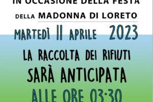 Avviso all'utenza: Martedì 11 aprile 2023 variazione orario raccolta rifiuti.